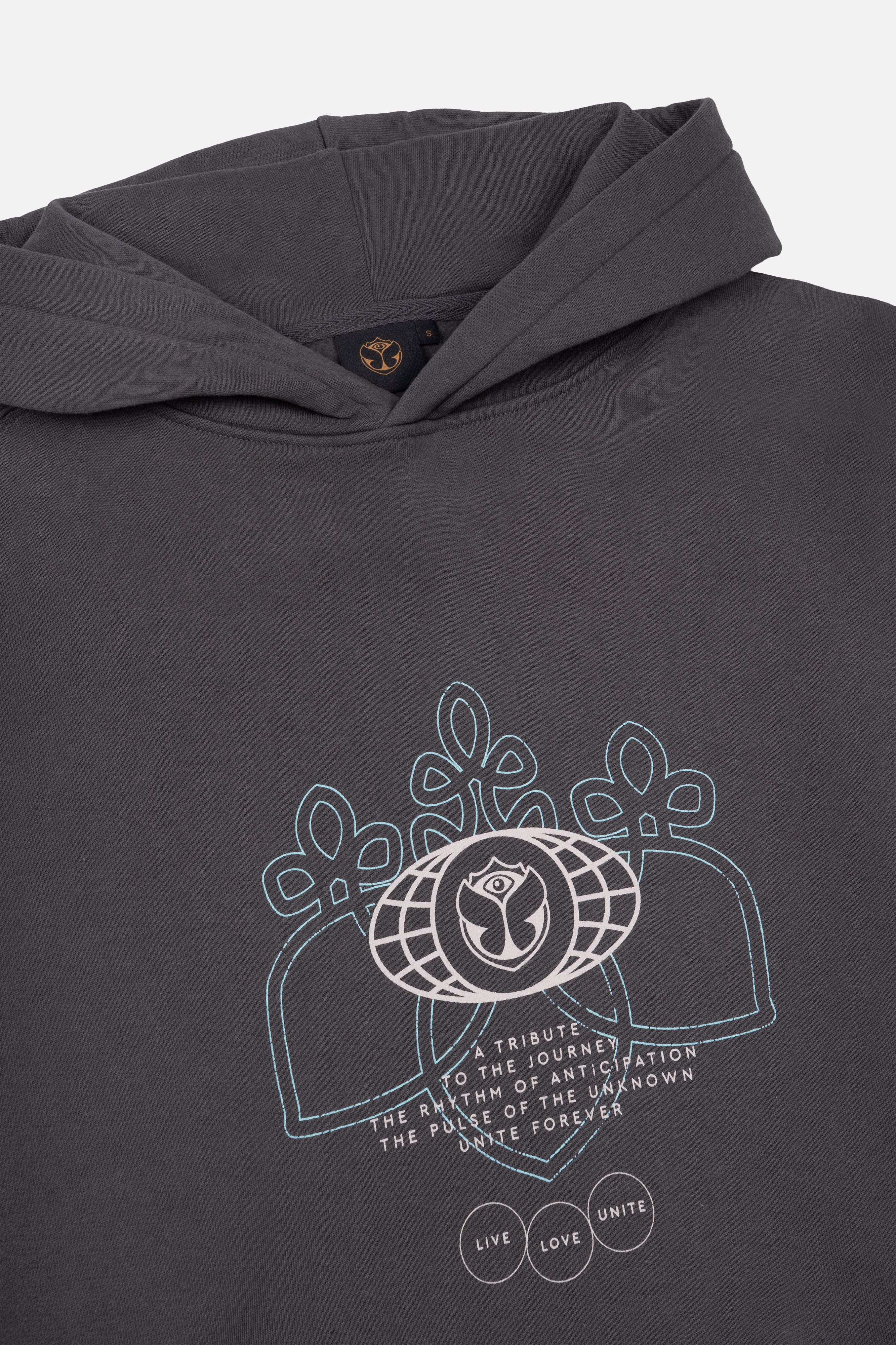 The Globe Stamp Hoodie celebrates the journey the People of Tomorrow make long before the gates open, filled with excitement, countdowns, and the growing rhythm of anticipation. The artwork and message of Unity reflect the shared journey that connects us all.
