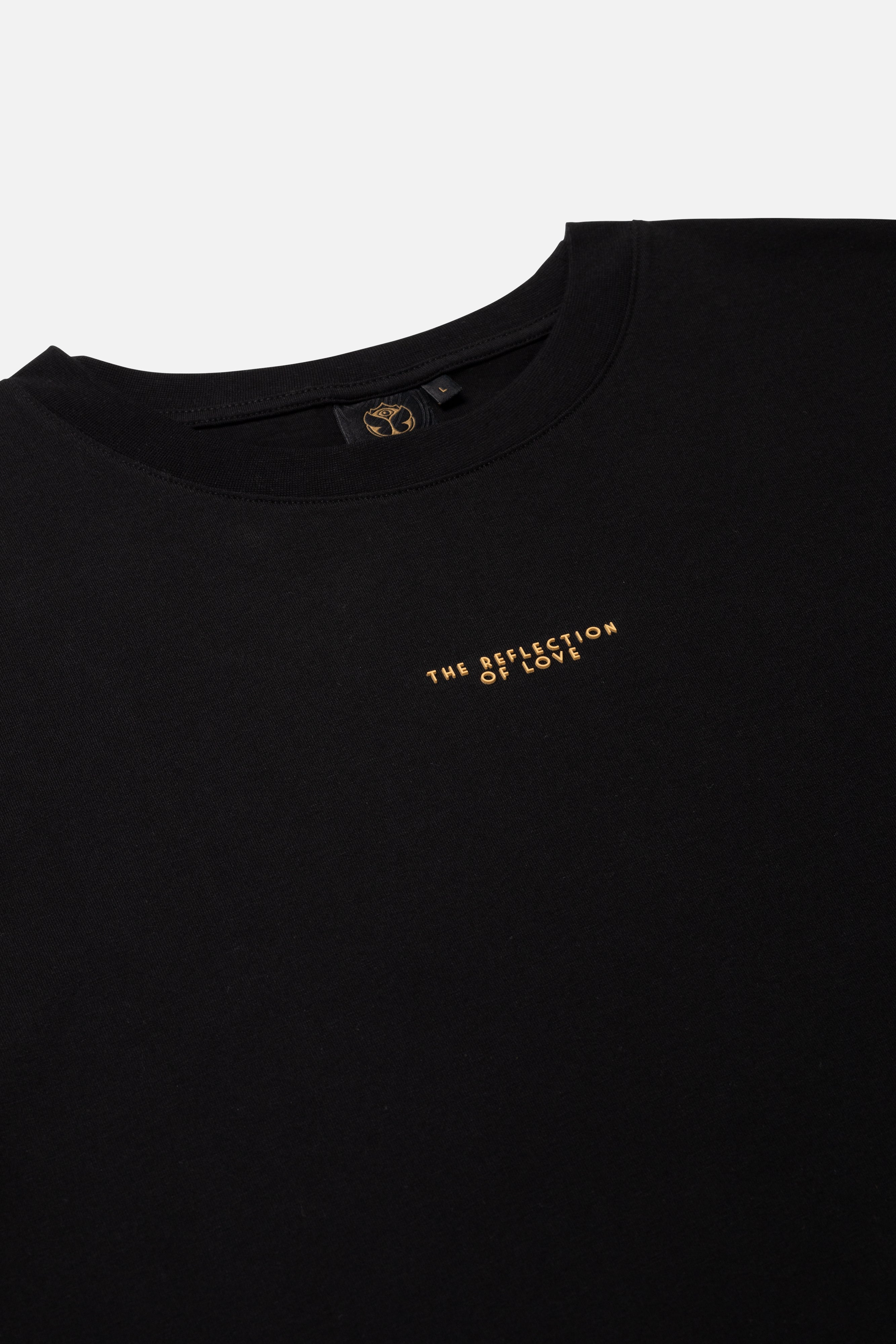 The Reflection of Love T-shirt features the iconic Reflection of Love artwork on the back, inspired by the Reflection of Love theme. This artwork symbolizes the beams of light that reflect throughout Tomorrowland, capturing the spirit and unity of the festival.