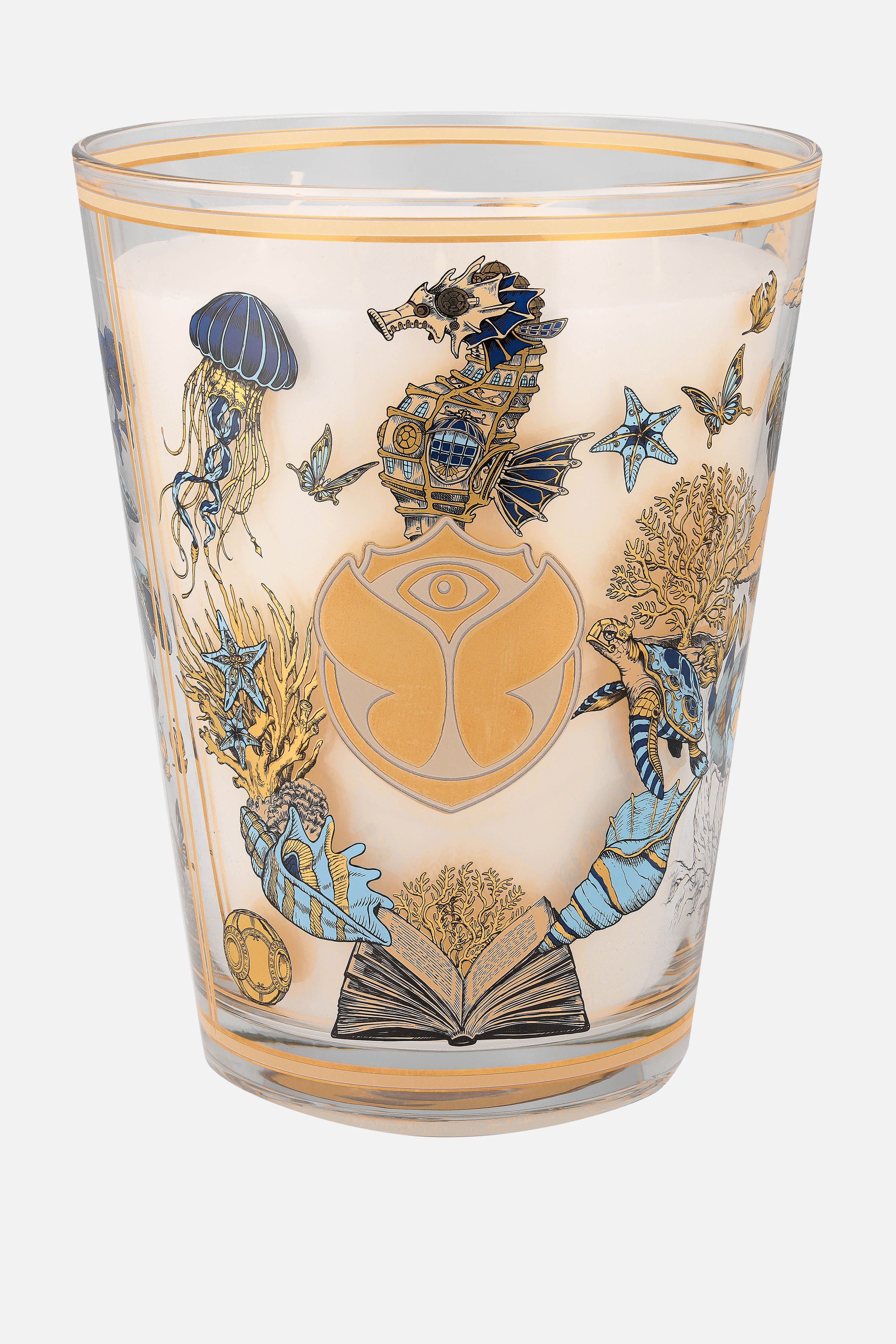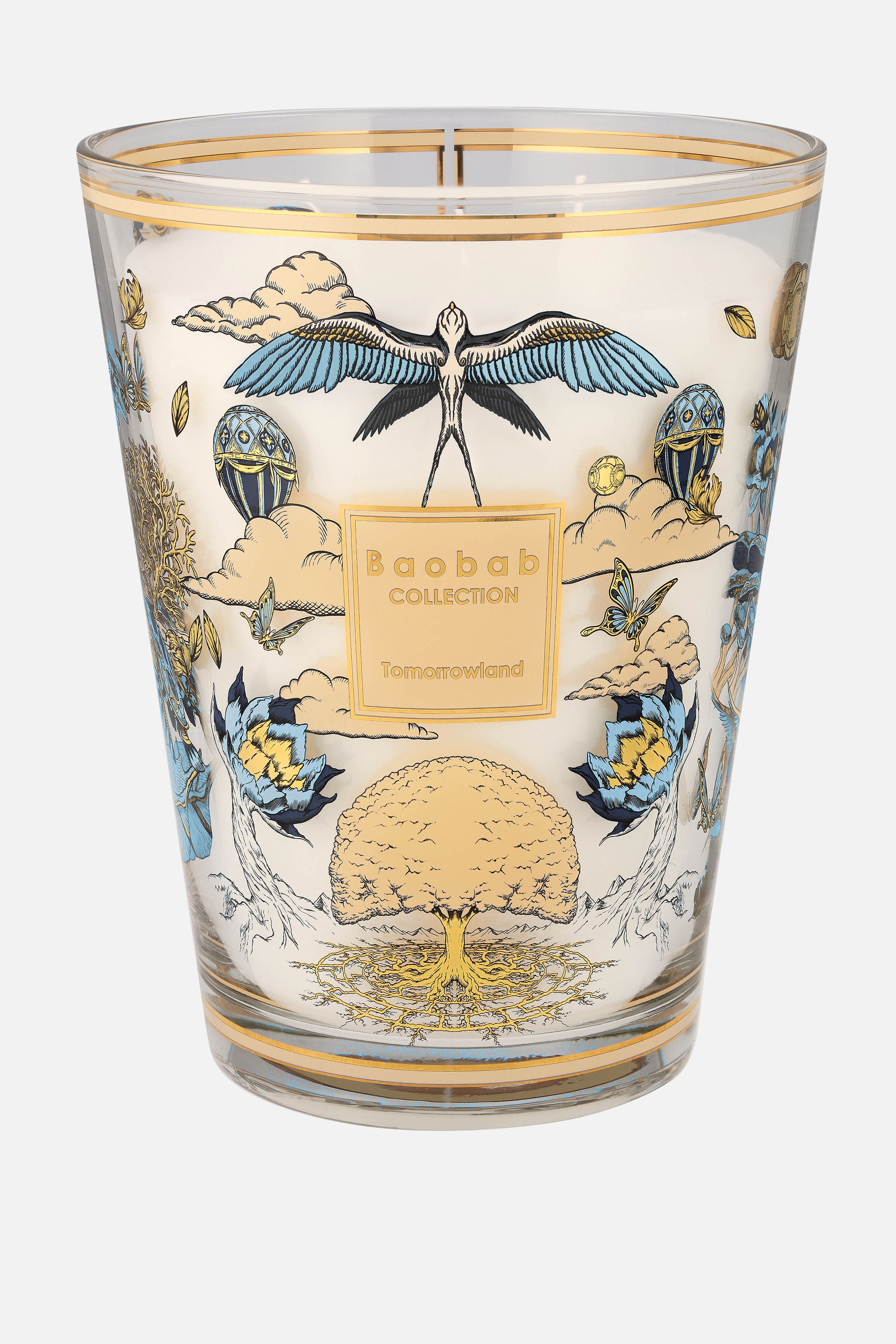 The Baobab Collection x Tomorrowland scented candles feature a refined palette of fresh and deep blue tones adorned with golden hand-drawn illustrations. Each element tells a story from several legendary themes within the Tomorrowland worlds. A fragrance with notes of lily of the valley and moss will take you to the magical world of Tomorrowland about the legendary tale of the Elixir of Life.