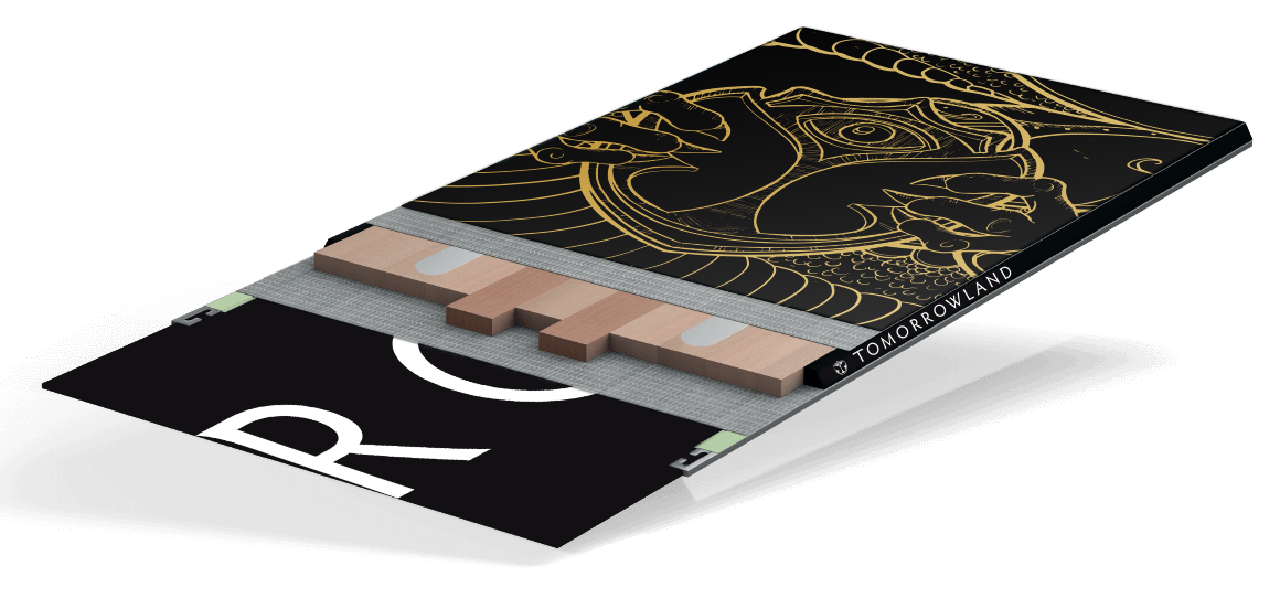 The Tomorrowland x ellesse Snowboard features a true-twin freestyle shape that has been seamlessly blended with an all-terrain camber profile, built for all-mountain and freeriding. The Top-layer features a black and white photo print of the People of Tomorrow with the branded butterfly taping that was created for this collaboration. The beautiful pink base with Tomorrowland and ellesse logo will allow you to crush laps at high speeds.