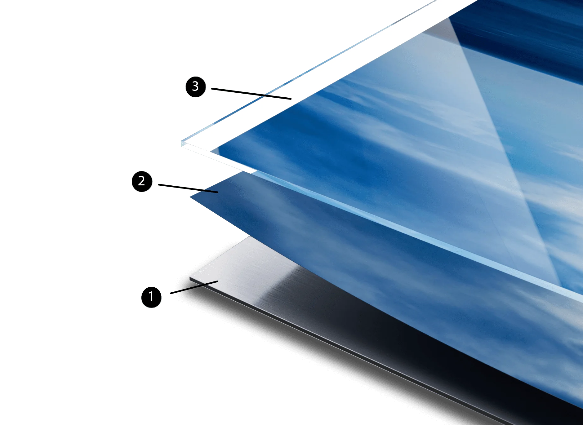 The Plexiglass finish completes an aluminium print. The photograph is printed on Fuji DPII Gloss 250 mg silver paper and mounted onto a Dibond aluminium panel. A 2 mm-thick plexiglass panel is directly applied over the print, using a pH-neutral adhesive system. This produces a durable and exceptional finish, free of bubbles or cracks, and perfectly protects the print. The plexiglass is light, unbreakable, and magnifies the luminosity of bright colours.